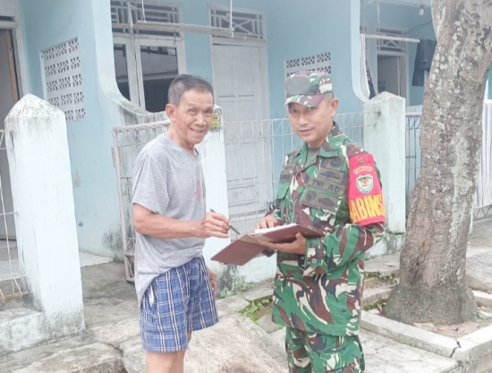 Serka Agus H, Babinsa Kelurahan Gerem, melaksanakan pendataan di wilayah Linkungan Gerem Raya, Kecamatan Grogol.