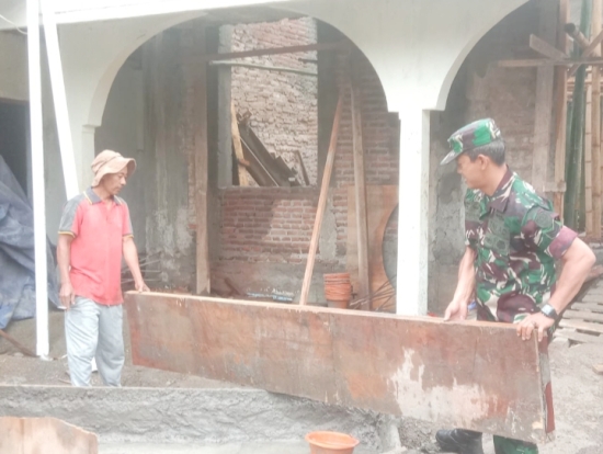 Sementara itu, di Desa Pasir Waru, Serka Suryadi melaksanakan kegiatan karbak membantu warga dalam proses merenovasi masjid yang berada di Kampung Baros.