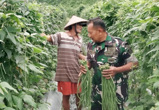 Serka Heru Purnomo, Babinsa Desa Bantarwangi, melaksanakan pendampingan perawatan tanaman kacang panjang milik petani di wilayah Kecamatan Cinangka.