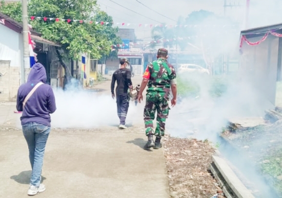 Peltu. Abdur Rokhim, Babinsa Desa Kertasana, melaksanakan kegiatan fogging di Perumahan Pesona, tepatnya di Kampung Tunggak RT 01/RW 07, Kecamatan Bojonegara.