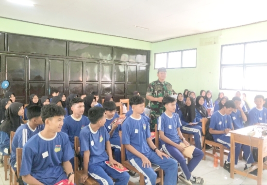Serka Aep Mulyana, Babinsa Desa Batu Kuda, memberikan materi wawasan kebangsaan kepada siswa-siswi di salah satu sekolah di wilayah Desa Batu Kuda, Kecamatan Mancak.