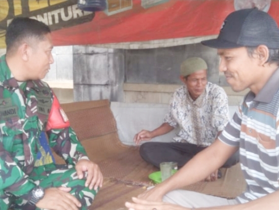 Sertu Fatulloh, Babinsa Kelurahan Panggung Rawi, melakukan komsos dengan tokoh masyarakat dan tokoh pemuda di lingkungan Samandaran, Kelurahan Panggung Rawi, Kecamatan Jombang, Kota Cilegon.