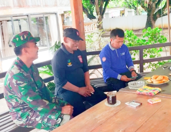 Sertu Kamsuri, Babinsa Desa Cikoneng, melaksanakan Komsos bersama para relawan Kelompok Siaga Bencana (KSB) dan Taruna Siaga Bencana (Tagana).