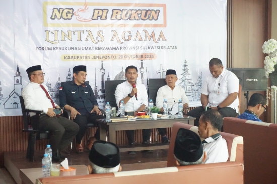 Jeneponto, Sekilas Indonesia – Forum Kerukunan Umat Beragama (FKUB) Provinsi Sulawesi Selatan kembali menggelar kegiatan “Ngopi Rukun Lintas Agama” di Kafe Premiere, Jeneponto, pada Selasa (28/10/2025). Acara ini menjadi wadah dialog yang konstruktif dan mempererat tali persaudaraan antarumat beragama di Sulawesi Selatan.