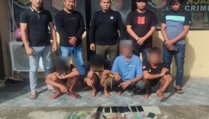 Empat terduga pelaku yang diamankan masing-masing berinisial F (17), A (21), S (20), dan R (13). Dari pengungkapan tersebut, petugas turut menyita 6 ketapel/pelontar, 33 anak panah busur, 2 unit sepeda motor, serta 1 unit mesin gerinda yang digunakan untuk membuat anak busur.
