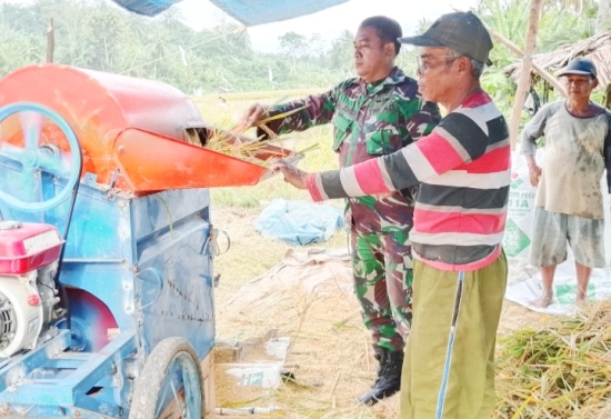 Kehadiran Babinsa dalam proses panen tersebut bertujuan mendukung peningkatan produksi pertanian sekaligus memberikan motivasi kepada petani agar terus meningkatkan ketahanan pangan desa.