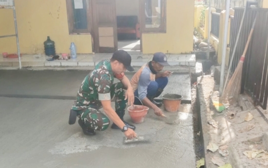 Dua Babinsa diterjunkan untuk mendukung perbaikan fasilitas umum di Desa Sindangmandi dan Desa Gerogol Indah, Kecamatan Anyar, Kabupaten Serang, Banten.