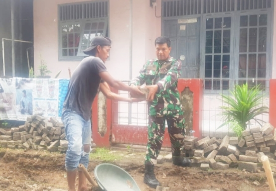 Di Kelurahan Gerem, Serma Agus Hamdani, Babinsa setempat, terjun langsung bersama warga melaksanakan Karbak berupa pembuatan jalan konblok menuju area pemakaman di Lingkungan Cikuasa.