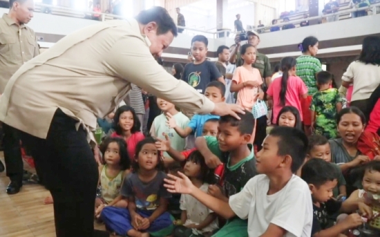 Setiba di lokasi, Prabowo langsung menuju dapur lapangan TNI-Polri yang tengah menyiapkan berbagai menu makanan untuk para pengungsi. Kedatangan Presiden disambut hangat oleh para warga.