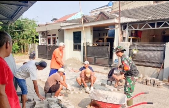 Pada kegiatan pertama di Bidang Karbak, Pelda Gugi, Babinsa Kelurahan Kali Timbang, bersama staf kelurahan serta warga RT 02/RW 01 Perumahan GDC, melaksanakan pembersihan drainase serta pemasangan paving block.