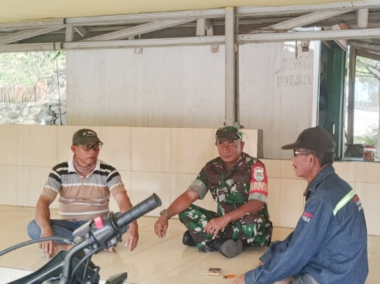 Dalam kegiatan tersebut, Serda Toni berdiskusi mengenai situasi keamanan di wilayah, khususnya terkait aktivitas masyarakat sehari-hari dan potensi gangguan kamtibmas.