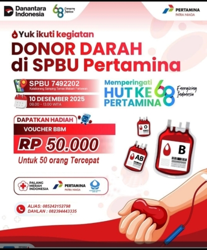 Dengan terselenggaranya kegiatan ini, SPBU Kalabbirang berharap dapat membantu memenuhi kebutuhan stok darah di rumah sakit, sekaligus menumbuhkan semangat berbagi dan kepedulian sosial di tengah masyarakat, sejalan dengan semangat HUT Pertamina ke-68 yang mengusung nilai kemanusiaan dan pelayanan untuk negeri.