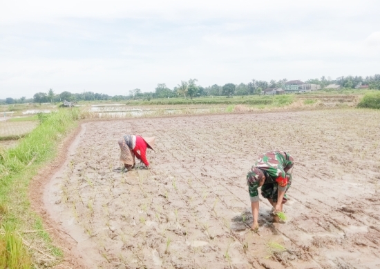 Serka Muh Arif Iksan selaku Babinsa Desa Gerogol Indah melaksanakan kegiatan Bintahwil dalam rangka pendampingan penanaman padi bersama para petani di wilayah Desa Gerogol Indah, Kecamatan Anyar.
