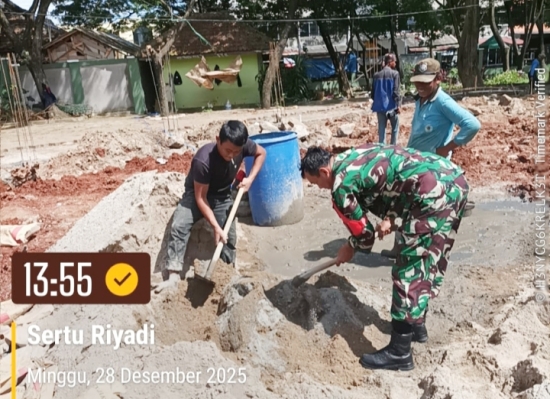 Dalam kegiatan tersebut, Pelda Gugi, Babinsa wilayah Kali Timbang Koramil Cilegon, bersama staf Kelurahan Kali Timbang dan masyarakat setempat melaksanakan pembersihan lingkungan sekaligus mendukung pelaksanaan pembangunan gedung KDKMP di wilayah Kelurahan Kali Timbang,