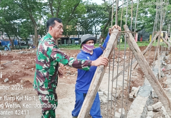 Kegiatan tersebut meliputi pembersihan lingkungan dan pelaksanaan pembangunan Gedung KDKMP di sekitar wilayah Kelurahan Jombang Wetan, Kecamatan Jombang, Kota Cilegon.