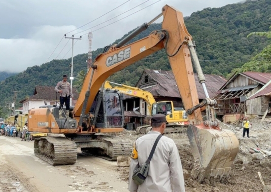 Di Desa Hutanabolon, personel TNI juga memperbaiki jalan yang terdampak bencana di Tukka, Tapanuli Tengah. Material lumpur yang sudah mengeras dibersihkan dan diangkut dengan truk. Fasilitas umum lainnya di Tukka yang dibersihkan adalah SDN 152892 dan SDN 152981.