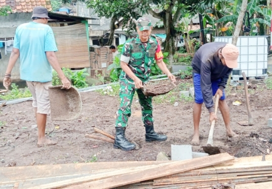 Babinsa Koramil 2303/Pulomerak Bersama Warga Wujudkan Kepedulian Lewat Karya Bakti