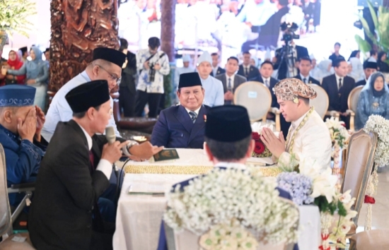 Prabowo hadir langsung menyaksikan momen sakral tersebut dan bertindak sebagai saksi dari pihak mempelai laki-laki.