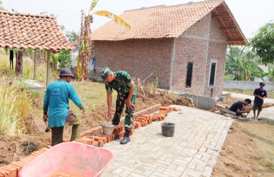 Sementara itu, Serda Jumar Babinsa Desa Sangiang juga melaksanakan kegiatan Karya Bakti dengan membantu warga melakukan pemasangan conblock jalan bersama masyarakat.