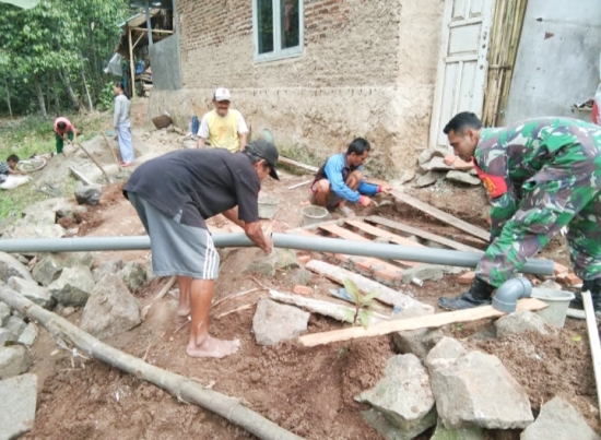 Pada Jumat 30 Januari 2026 dua Babinsa melaksanakan gotong royong membantu pembangunan rumah warga di wilayah Kecamatan Bojonegara.