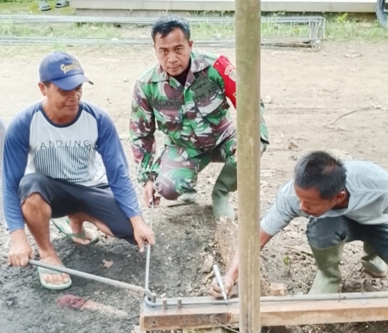 Di Desa Kamasan, Serka Joko selaku Babinsa setempat melaksanakan kegiatan Karbak dengan membantu pembuatan ceker ayam sebagai pondasi salah satu rumah warga.