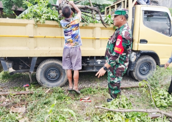 Sementara itu, Serka Badrudin, Babinsa Kelurahan Tegal Ratu, melaksanakan Karbak bersama warga dalam rangka pembersihan dan pengangkutan sampah pascabanjir di Lingkungan Cigading, Kelurahan Tegal Ratu, Kecamatan Ciwandan.