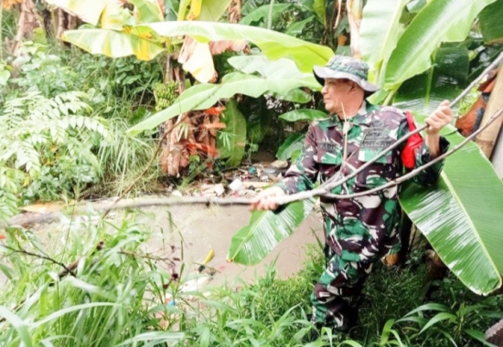 Sementara itu, Sertu Suprianto, Babinsa wilayah Karang Asem Koramil Cilegon, melaksanakan kegiatan karya bakti bersama tokoh masyarakat dan tokoh pemuda di lingkungan warga bantaran Sungai Ciberko, Kelurahan Kalitimbang, Kecamatan Cibeber.