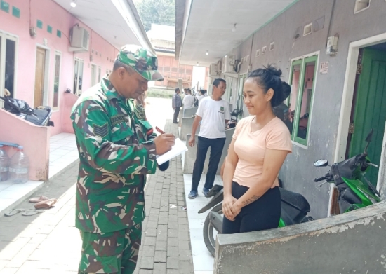 Serma Ujang Sujai selaku Babinsa Kelurahan Rawa Arum melaksanakan giat Puanter berupa pendataan kontrakan warga yang baru di wilayah Kelurahan Rawa Arum.