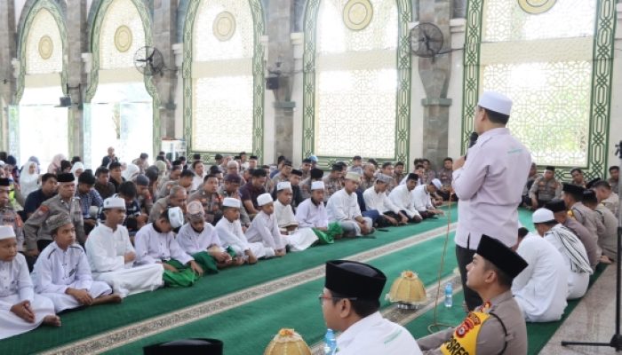Kapolres Maros AKBP Douglas Mahendrajaya, S.H., S.I.K., M.I.K., M.Tr.Opsla dalam sambutannya menyampaikan bahwa kegiatan ini menjadi momentum untuk memperkuat keimanan sekaligus mempererat sinergitas antara Polri dan Baznas bersama kalangan pesantren.