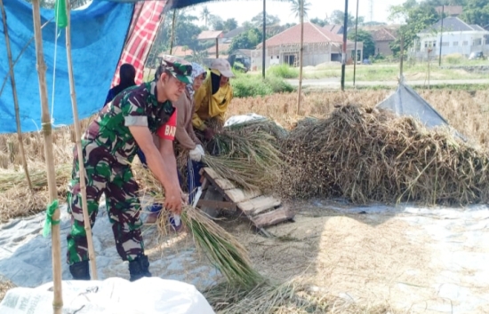 Sementara itu, di lokasi berbeda, Serma Hamdani selaku Babinsa Desa Talaga turut melaksanakan kegiatan Bintahwil dengan membantu warga memanen padi di Kampung Saung Ilir, Desa Talaga, Kecamatan Mancak.