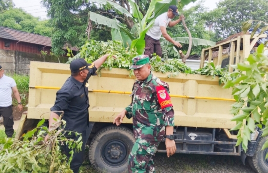 Para Babinsa bersama masyarakat turun langsung membersihkan bantaran sungai dan saluran air di wilayah Kecamatan Ciwandan, Kota Cilegon.