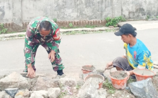 Sementara itu, Sertu Sunardi, Babinsa Kelurahan Kepuh Koramil 2307/Ciwandan, juga melaksanakan kegiatan serupa bersama masyarakat dengan membantu pembangunan pondasi rumah warga di Kelurahan Kepuh, Kecamatan Ciwandan, Kota Cilegon.