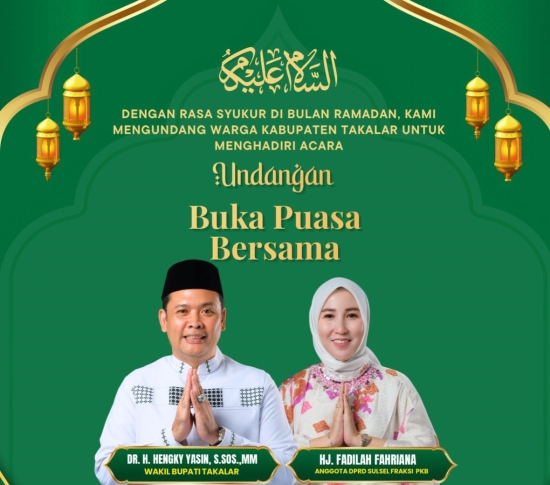 TAKALAR – Dalam rangka mempererat tali silaturahmi di bulan suci Ramadan 1447 Hijriah, Wakil Bupati Takalar, H. Hengky Yasin, S.Sos., M.M, bersama Anggota DPRD Provinsi Sulawesi Selatan dari Fraksi PKB, Hj. Fadilah Fahriana, mengundang masyarakat Butta Panrannuangku untuk menghadiri acara buka puasa bersama.