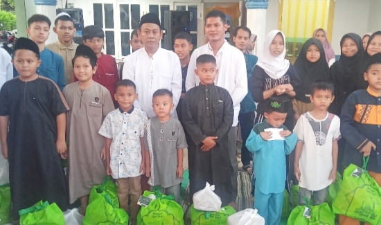 Selanjutnya, acara dilanjutkan dengan pembagian santunan kepada anak-anak yatim yang telah diundang dalam kegiatan tersebut.
