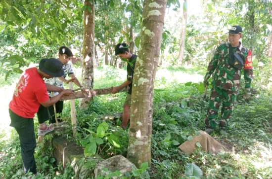 Babinsa Koramil 2305/Cinangka Gelar Karya Bakti, Bantu Patok Batas Tanah dan Penghijauan