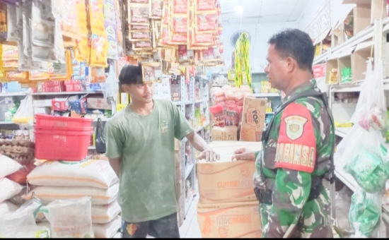 Serka Jandri selaku Babinsa Kelurahan Citangkil melaksanakan kegiatan pendataan harga serta jenis kebutuhan pokok (sembako) di wilayah Kelurahan Citangkil, Kecamatan Citangkil, Kota Cilegon.