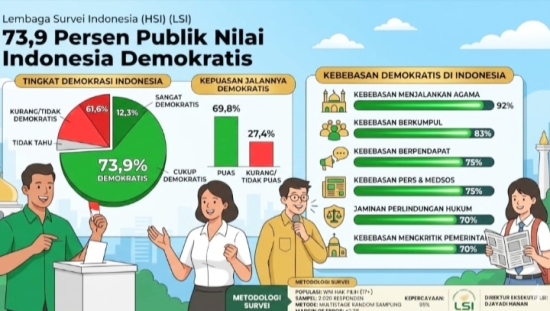 Sekilasindonesia.id JAKARTA – Mayoritas masyarakat Indonesia menilai sistem politik di Tanah Air masih berada dalam koridor demokrasi. Hasil survei terbaru Lembaga Survei Indonesia (LSI) menunjukkan sebanyak 73,9 persen responden menyebut Indonesia sebagai negara demokratis.