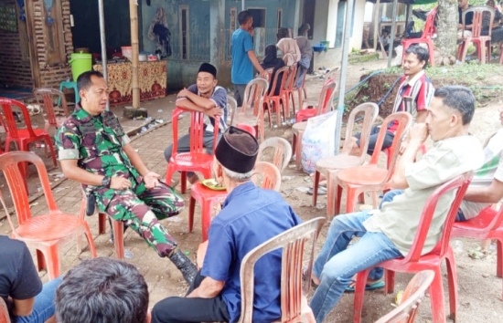 Serka Jony selaku Babinsa Desa Cikedung melaksanakan Komsos dengan masyarakat di Kampung Pasir Menteng.