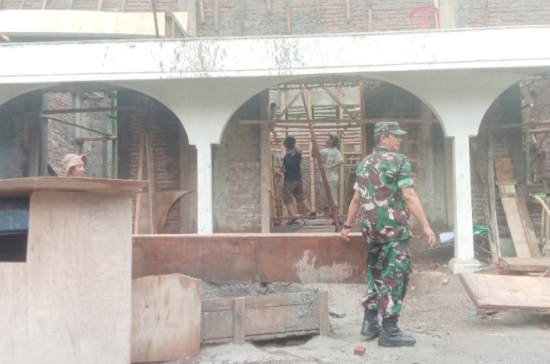 Di tempat terpisah, Serka Suryadi, Babinsa Desa Pasir Waru, melaksanakan kegiatan Karbak bersama masyarakat dalam membantu renovasi masjid di Kampung Baros, Desa Pasir Waru, Kecamatan Mancak.