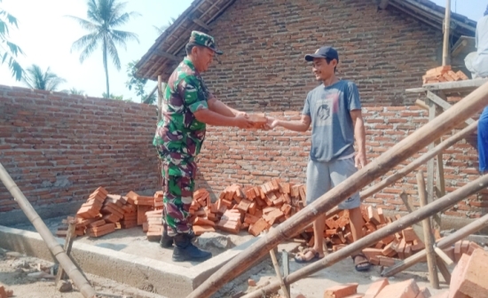 Serma Aep Mulyana selaku Babinsa Desa Batu Kuda melaksanakan kegiatan karbak dengan membantu pembangunan rumah warga di Kampung Sambilandak, Desa Batu Kuda, Kecamatan Mancak.