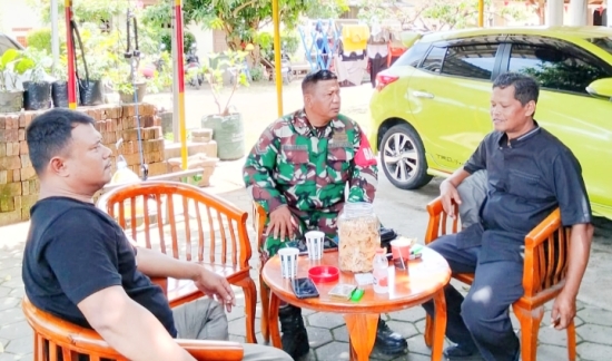 Serda Mahfud, Babinsa Kelurahan Randakari, melaksanakan kegiatan komsos bersama tokoh masyarakat dengan membahas rencana gotong royong pembersihan lingkungan.