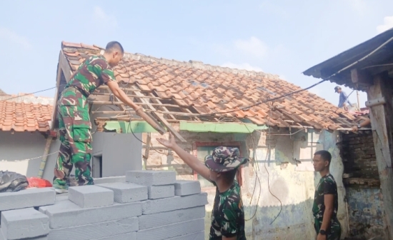 Satgas TMMD melaksanakan pembongkaran rumah milik Ibu Jumilah yang berlokasi di RT 02 RW 06 Link Sukasari Kelurahan Mekarsari Kecamatan Pulomerak Kota Cilegon.