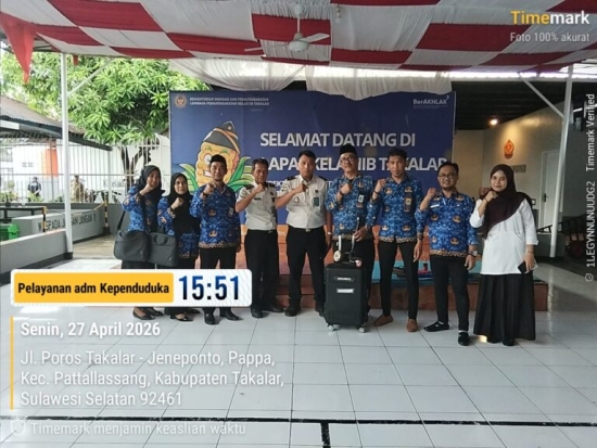 TAKALAR,– Dinas Kependudukan dan Pencatatan Sipil (Disdukcapil) Kabupaten Takalar kembali menunjukkan komitmennya dalam pelayanan publik inklusif dengan melaksanakan kegiatan “jemput bola” di Lembaga Pemasyarakatan (Lapas) Kelas IIB Takalar, Senin (27/4/2026).